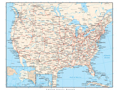 United States Map with States, Capitals, Cities, & Highways